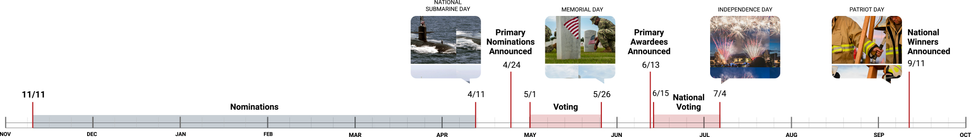 We’ll notify you via email when voting opens. All Americans are encouraged to get out and vote and express their patriotism in a meaningful way!